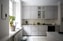 Direkt till höger kliver vi in i köket som är en dröm för dig som älskar charm och tidlös design. Här möts du av vackra grå skåpluckor som ger köket en varm och inbjudande känsla. Luckorna kompletteras med mässingsbeslag samt bänkskiva i marmor som förhöjer känslan av lyx. I detta kök har varje detalj noggrant valts ut för att skapa en harmonisk och inbjudande plats med en modern touch och en stark känsla av själen från förra sekelskiftet. Tack vare att man nyttjat takhöjden erbjuds gott om förvaring ända upp i nock. Vidare erbjuder köket en gedigen arbetsyta för hemmakocken. Den maskinella utrustningen består av spishäll, ugn, fläkt, integrerad diskmaskin samt integrerad kyl och frys.