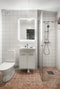 Vardagsrummet är lättmöblerat och rymmer med enkelhet soffa, soffbord och övrigt möblemang. Den öppna och luftiga känslan skapar ett inbjudande rum där det är enkelt att trivas. Sovrummet håller en bra storlek och erbjuder gott om plats för dubbelsäng med tillhörande sängbord, samt möjlighet till ytterligare förvaring.