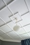 Till höger från hallen nås en av bostadens stora höjdpunkter - Sovrummet. Taket är klätt med ett mycket pampigt kassettak, väggarna är målade och på golvet ligger en klassisk behandlad fiskbensparkett. Gott om klädförvaring i garderober.
