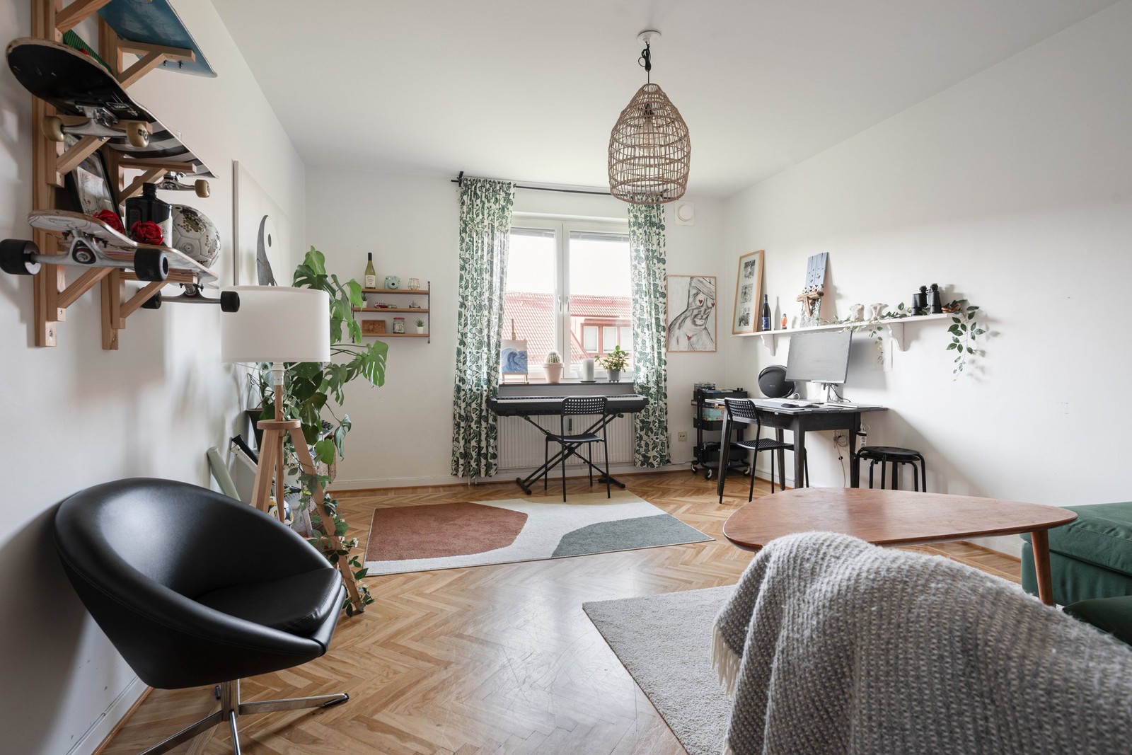 Välkommen till ett stilrent och trivsamt hem där ljus, rymd och välbevarade originaldetaljer möts. Hallen är rymlig med god förvaring och ekparkettgolv. Den generösa takhöjden och de ljusa ytskikten återkommer genom hela bostaden och skapar en luftig känsla. Vardagsrummet har ett härligt ljusinsläpp från stort fönster i insynsskyddat läge, vacker fiskbensparkett och en dekorativ glasdörr med spröjs. Köket är charmigt med vita skåpluckor, mörk bänkskiva, brädgolv i original och plats för matbord. Sovrummet är rofyllt med plats för dubbelsäng och förvaring, härligt ljusinsläpp från insynsskyddat fönster. Badrummet är kaklat i vitt med badkar och spegelskåp. En genomgående trivsam lägenhet med både karaktär och komfort!