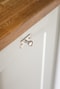 Köket är renoverat med gråa köksluckor med nätta beslag som matchas ihop fint med bänkskivan i trä och grått kakel som följer väggen ovan. Köket är utrustat med integrerad kyl/frys, spis, spisfläkt, ugn, mikrovågsugn och diskmaskin.
