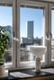 Härifrån nås även bostadens balkong i västläge, en härlig förlängning av vardagsrummet som erbjuder en naturlig plats för avkoppling under årets varmare månader och en fantastisk utsikt över Göteborgs stad.