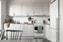 Till vänster från hallen ligger bostadens hemtrevliga kök som går i ljusa toner. Här får man plats med ett köksbord för minst fyra personer. Köket har ett stort fönster som släpper in gott om ljus samt utgång till bostadens härliga balkong. Skåpluckorna i vitt möter ljust kakel och en praktisk diskbänk. Köket är utrustat med kyl/frys, spis med ugn, fläkt och bänkdiskmaskin. Väggarna är tapetserade i en mönstrad tapet som lyfter kökets ljusa toner.