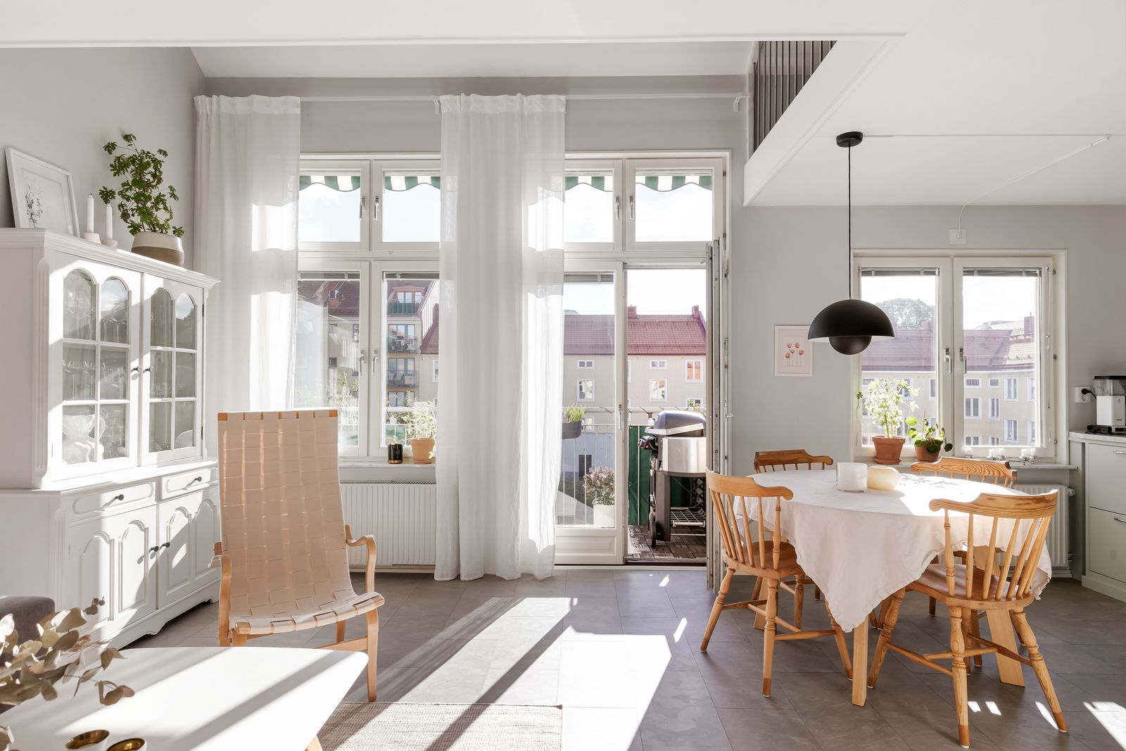 Detta välskötta hem bjuder på imponerande takhöjd med synliga takbjälkar, en otroligt luftig känsla och en balkong i bästa söderläge. Här bor ni i en lugn oas med restauranger, caféer och butiker på gatan nedanför. Ett stenkast från goda kommunikationer till stadens liv och en kort promenad till naturområden. Välkommen att upptäcka ett hem och en plats där ni verkligen kommer trivas!