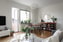 Ljust och generöst vardagsrum med gott om plats för både soffgrupp, matbord och övrigt möblemang efter behov. Den vackra fiskbensparketten sätter en klassisk prägel på rummet och bidrar till bostadens charm. Härifrån nås balkongen.