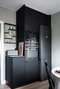 Köket är smakfullt renoverat där vitt kakel snyggt bryter av från den i övrigt svarta inredningen från Kvikk. Mycket generöst med både skåps- och lådförvaring samt ordentliga arbetsytor. Fullt maskinellt utrustat med spishäll, varmluftsugn, kyl/frys, diskmaskin, inbyggd mikrovågsugn och spiskåpa. Samtliga i rostfritt utförande. En generös matplats för fyra ryms med enkelhet. Samma ekparkett som i hall och sovrum och väggar i samma färg som i hallen.