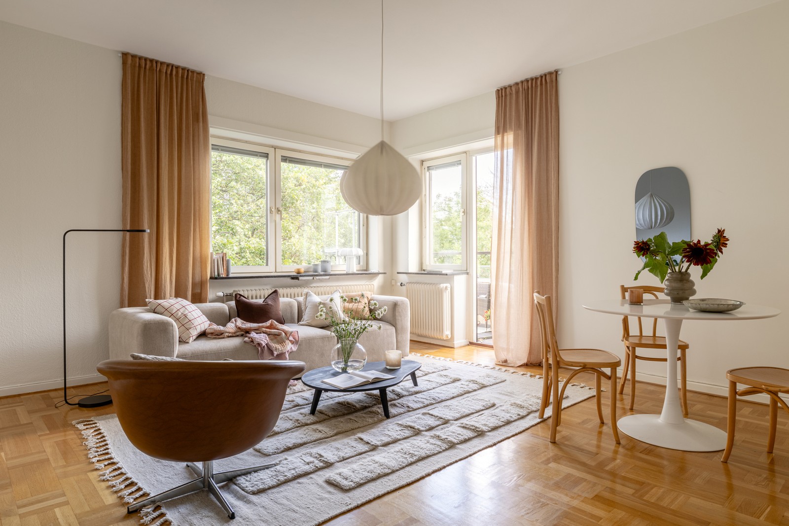 Funkistvåa högst upp i huset med solig hörnbalkong mitt i Söderlingska parken!
