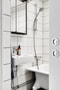 Hallen är rymlig och erbjuder goda förvaringsmöjligheter i form av platsbyggda garderober och hatthylla.