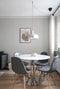 Köksdelen är smart utformad med halvöppen planlösning och direkt närhet till matplatsen i vardagsrummet. Köket är fint renoverat 2018 med ljusa köksluckor som bryts av mot en bänkskiva i trä och mörkt kakel. Full maskinpark med induktionshäll, ugn, integrerad mikro, fläkt, kyl/frys.