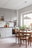 Köket ät tidlöst och funktionellt med en praktisk köksö som blir en social samlingspunkt när festliga sammankomster stundar. Här finns gott om skåpsförvaring bakom ljusa köksluckor, bänkskiva i tåligt material med grått mosaikkakel ovan som ger ett tidlöst intryck. Matplatsen är fint placerad vid fönstret med utsikt mot Älvsborgsbron. Köket är utrustat med spis, kyl/frys (installerad för ca 2 år sedan) samt fläkt. Väggarna är tapetserade och målade i vitt med en grå fondvägg. Ovan köksön sitter spotlights.