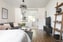 Allrummet ligger i öppen anslutning till det välplanerade köket och skapar en luftig atmosfär. Här finns utrymme för både soffgrupp med tillhörande möblemang samt större säng. Ett stort fönsterparti bidrar med mycket dagsljus. På golvet ligger parkett och väggarna är tapetserade.