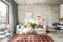Vardagsrummet är integrerat med hallen och inbjuder till umgänge och gemenskap. Det är stort nog att rymma såväl soffgrupp med tillhörande möblemang som matbord utan att göra avkall på den luftiga känslan. Fönster från golv till tak skapar ett otroligt ljusflöde in och en härlig atmosfär. Härifrån nås utgången till den härliga balkongen som erbjuder utsikt mot den grönskande innergården. Sol har ni större delen av dagen.