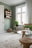 Rakt fram från hall och kök finner du hemmets vardagsrum. Stora fönsterpartier släpper in generöst med ljus och härifrån skymtar ljus och grönska från den lummiga innergården. Det fria läget bidrar till en rymlig känsla som gör sig påmint i hela bostaden. Här finns plats för matsalsmöbel med flera sittande gäster samt soffgrupp med tillhörande möblemang. Vitmålade väggar möter parkett. Ett mycket trivsamt och socialt rum.