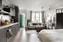 I sällskapsrummet får en mindre soffa med tillhörande möblemang plats. Ljusflödet är inbjudande tack vare de stora fönsterpartierna.