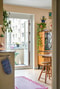 Till vänster ligger det väl tilltagna köket med generös yta för en större matplats. Köket är smakfullt renoverat i klassisk funkisstil och erbjuder gott om förvaring och arbetsyta. Två stora fönster släpper in rikligt med ljus och bjuder på en härlig utsikt. Här finns även kyl/frys, induktionshäll, inbyggd ugn och mikro, fläkt samt diskmaskin. Från köket når du bostadens soliga balkong, perfekt för både sittgrupp och odlingar, med utsikt över älven.