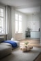 Till vänster från hallen öppnar de sociala ytorna upp sig. Vardagsrum och kök binds samman i en luftig disposition där nytt möter tidlöst. Vackra, ljusa brädgolv löper genom både vardagsrum, kök och sovrum. De höga handblåsta fönstren från husets byggår, med överljus och spröjs, sätter en unik prägel och låter ljuset flöda in. I vardagsrummet finns gott om plats för en större soffgrupp och tv-möblemang, och den öppna planlösningen ger goda möjligheter att möblera efter behov.