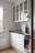 Härifrån öppnar bostaden upp sig i en ljus och social öppen planlösning mellan kök och vardagsrum. Det klassiska vita köket har en ljusgrå bänkskiva och är utrustat med allt du behöver, spis, ugn, mikro, kyl/frys och diskmaskin. I anslutning finns en naturlig plats för matbord.