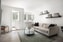 Från hallen nås sovrummet. Här inne finns ett stort fönster mot grannområdet. Här ryms plats åt dubbelsäng och ytterligare möbel. Samma genomgående golv och väggarna är målade i vitt.