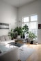Kök och vardagsrum samspelar i en öppen och social planlösning där rymden blir bostadens signum. Den generösa takhöjden skapar ett luftigt och nästan loftliknande intryck, samtidigt som stora fönster släpper in rikligt med ljus.