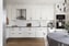 Till höger, bakom väggen, ligger köket. Detta är ett fräscht och inbjudande kök med gott om förvaring i både skåp och lådor. Inredningen går i vitt och arbetsbänken är i ljusgrå laminat. Samtliga vitvaror är i rostfritt utförande. Vid fönstret har köksbordet sin plats.