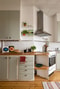 Till vänster om hallen nås köket och vardagsrummet som ligger öppet intill varandra. Här erbjuds ett fantastiskt ljusinsläpp och en magisk utsikt över staden från stora fönster som ramas in av eleganta fönsterbänkar i massivt trä. Bra med arbetsyta och förvaring finns bakom de charmigt mintgröna originalskåpen. Den maskinella utrustningen består av kyl/frys, ugn, induktionshäll med kolfilter fläkt samt en diskmaskin.