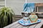 Insynskyddat och soldränkt altandäck samt gräsytor och stensatt entré. Lummig, trevlig och plan trädgårdstomt med härliga gräsytor för lek och spel. Trädgården omgärdas av ett skyddande staket vilket skapar en privat och härlig innergård.
