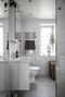 Badrummet är klätt med grått klinker på golvet och vitt kakel på väggarna, detta från 2015. Ett praktiskt vädringsfönster ger både ljus och ventilation. Här finns badkar, wc, handfat, dusch med spegeldörrar och ett spegelskåp samt en toppmatad tvättmaskin.