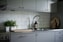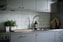 Köket, som renoverades 2018, har skåpluckor i ljusgrå ton från med stilrena beslag. Här finns gott om förvaringsutrymme och bra arbetsytor. Den maskinella utrustningen inkluderar kyl/frys (från Siemens) induktionshäll (från Smeg), unbyggd mikro, diskmaskin och fläkt. Här vilar också det tidstypiska brädgolvet.