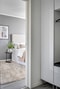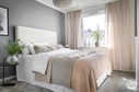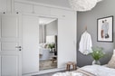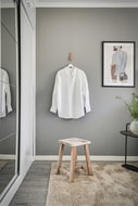 Bostaden stora sovrum lämnar med enkelhet plats för dubbelsäng, sängbord och mer möblemang om så önskas. Förvaring finns i en skjutdörrsgarderob. Målade väggar i grått och på golvet ligger fint laminat.