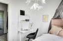 Det andra sovrummet ligger till höger om hallen. På golvet ligger laminat och väggarna är vita. Här finns plats för säng samt förvaring/skrivbord om så önskas.