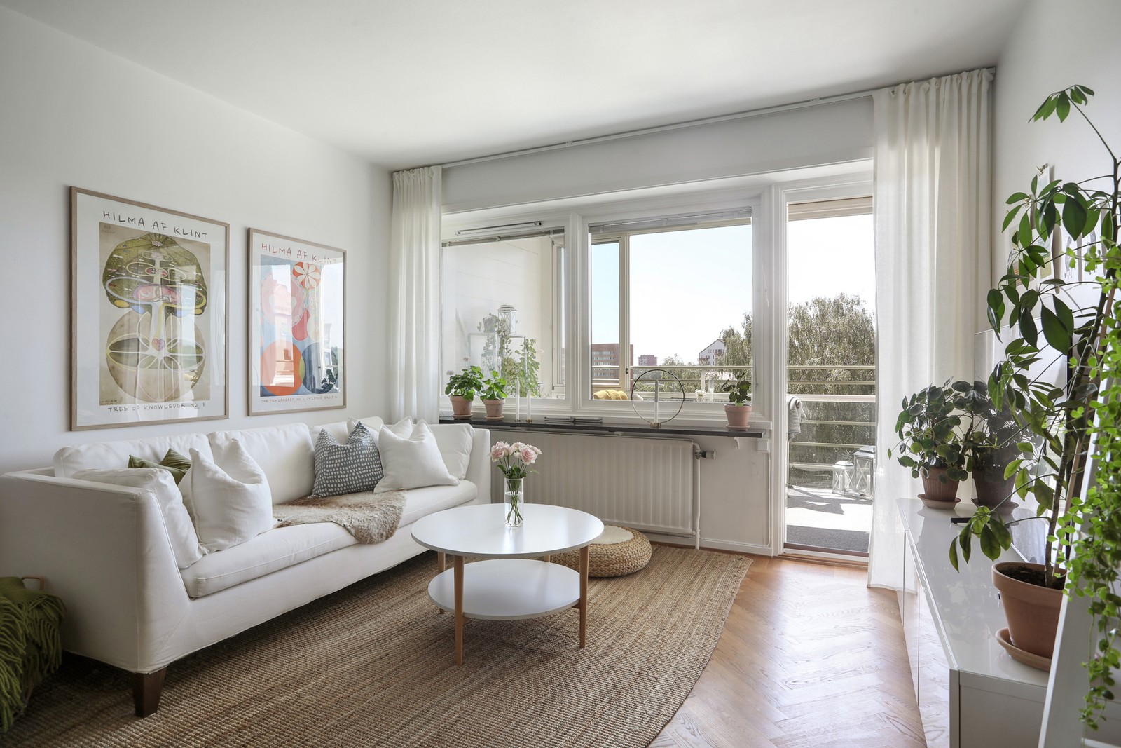Smakfullt renoverad genomgångstvåa med stor inglasad balkong & högt, naturnära läge i Ruddalen