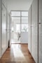 Du välkomnas in i en stor och inbjudande hall med goda möjligheter för avhängning av ytterkläder och skor direkt i entrén. Övrig förvaring för sådant man inte vill ska ligga framme göms bakom flera garderober. En porttelefon släpper in gästerna från markplan och bostaden är installerad med säkerhetsdörr.