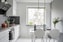 Lägenhetens kök renoverades 2013 och erbjuder goda arbetsytor och plats för kökets alla redskap. Ovan arbetsbänkarna sitter ett mörkt kakel. Den givna matplatsen hittar vi intill fönstret med sikt mot baksidan. Genom fönstret strålar morgonsolen. Utrustningen består av spishäll, fläkt, diskmaskin, kombinerad kyl och frys.