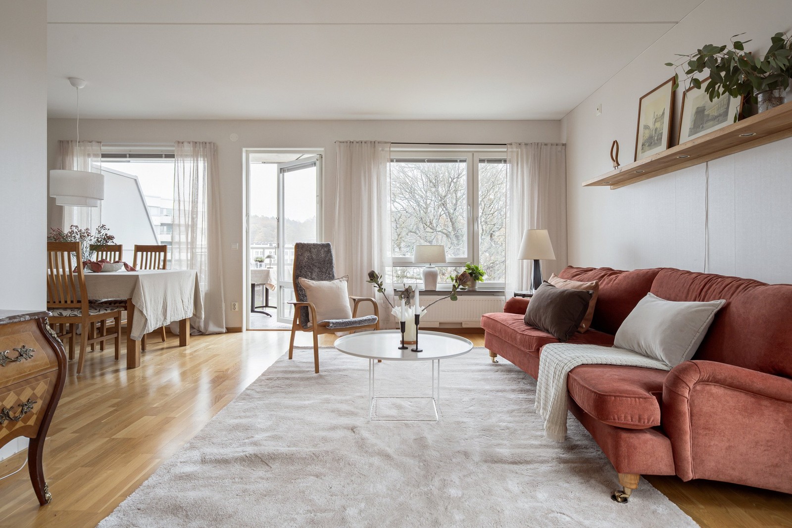 Välkommen till en fantastisk gaveltrea på Sankt Jörgens Väg 28F med tillhörande parkeringsplats om en kostnad på 312 kr/mån. Här välkomnas du av en välplanerad trea om 82 kvm med en social och öppen planlösning med ljusinsläpp från tre väderstreck. Bostaden präglas av genomgående ljusa ytskikt, enhetliga golv och har alla bekvämligheter du kan tänkas behöva i vardagen. Köket är välutrustat samt stilrent med vita fronter och förlängs med rymliga vardagsrummet, perfekt för sociala sammankomster. Stora härliga fönsterpartier skänker gott ljus och de sociala ytorna förlängs av balkongen som ligger i solsäkert sydväst läge med utsikt mot den lummiga gården, helt utan insyn. Vidare har du ett helkaklat badrum med golvvärme och egen tvättavdelning. Två rymliga sovrum varpå ena har en fransk balkong. I båda sovrummen erbjuder gott om förvaring i flertalet garderober och fönstren blickar mot skogen på baksidan. Vidare finns ett förråd finns att nyttja i separat byggnad.
