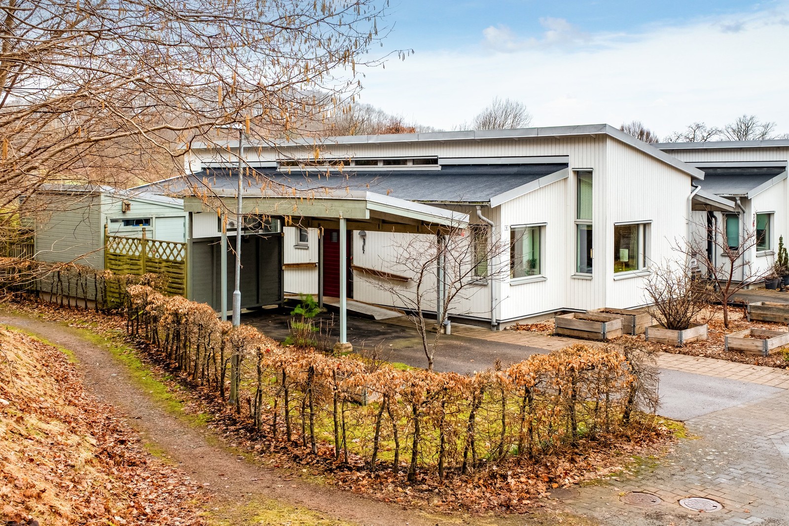 Familjevänligt och modernt enplanshus med gavelläge och naturen runt hörnet