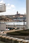 Underbar balkong i söderläge mot innergården och härifrån ser du hamninloppet, Masthuggskyrkan och småbåtarna.