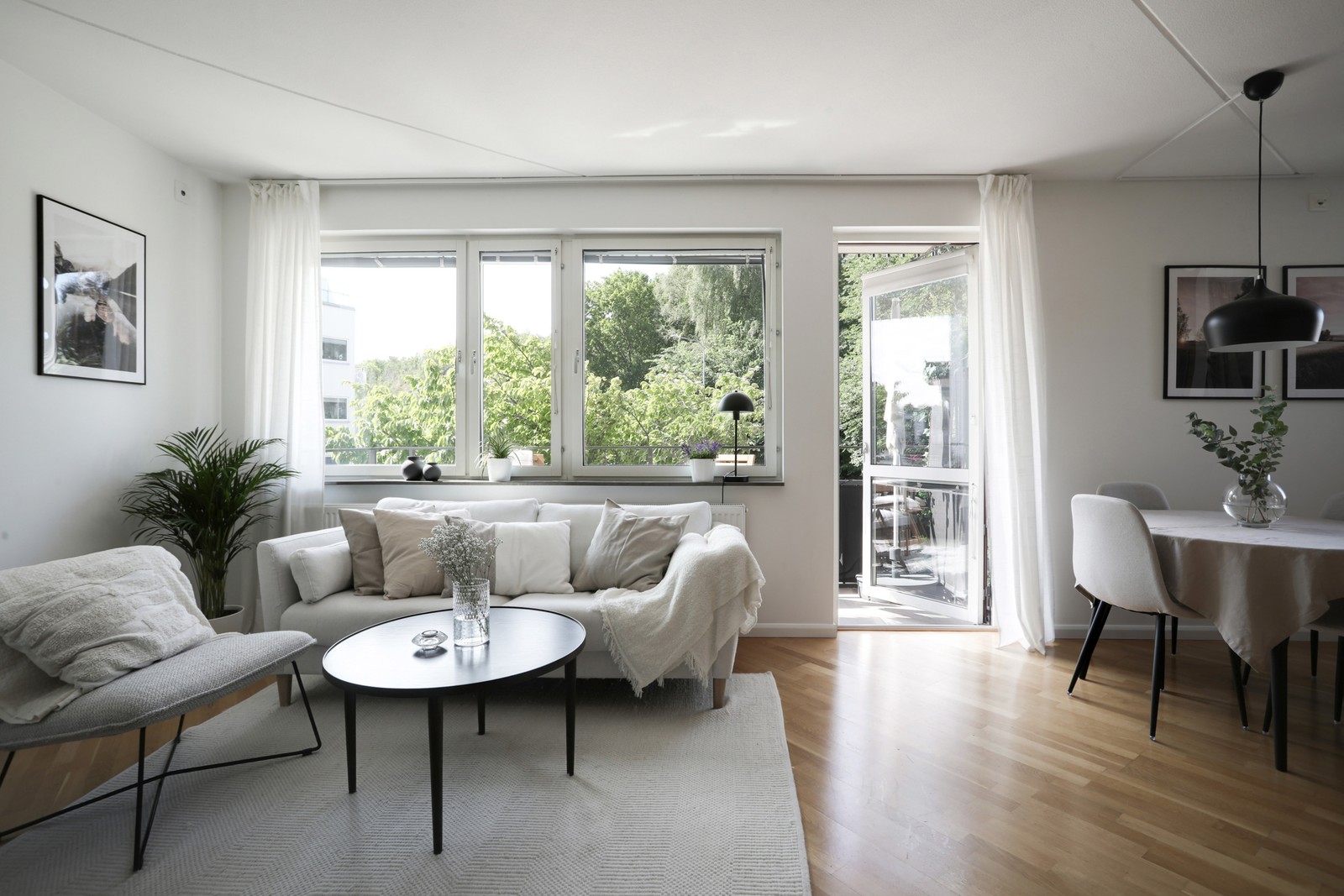Ljus och trivsam bostad i optimal disposition. Här njuter du av ett bekymmersfritt boende ett stenkast från kajkanten i Sannegården. Bostaden har separat sovdel med plats för säng som ligger avskilt från de sociala ytorna. Stora fönster i två väderstreck ger ett fint ljusinsläpp och fria vyer mot den grönskande omgivningen.