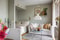 Köket förenar sig med vardagsrummet i öppen planlösning som rymmer både soffgrupp och säng. Sängen ryms perfekt i en alkovdel som man kan skärma av med vikvägg eller draperi.