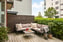 Utmed hela bostaden löper en stor härlig uteplats. Den träbelagda uteplatsen ligger avskilt och skapar en privat yta. Dessutom ligger den i soligt söderläge och här kan du njuta av solen hela dagen. Mycket god plats för loungegrupp, cafémöbel och grill. Solens strålar når uteplatsen från morgon till kväll. Ställer ni er upp och ser åt vänster blickar ni mot den vackra och glittrande småbåtshamnen.