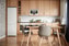 Vidare in nås kök och vardagsrum i öppen planlösning. Stora fönsterpartier åt sydväst släpper in ljuset som får sprida sig fint i rummet. Köket är inrett med träfärgade luckor och mörk bänkskiva i slitstarkt laminat med vitt kakel bakom. Köket är utrustat med kombinerad kyl/frys, spis, fläkt, ugn, mikro samt integrerad diskmaskin. Gott om plats för matbord för flera sittande gäster.
