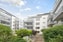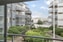 Trevlig innergård mellan husen med fina planteringar.