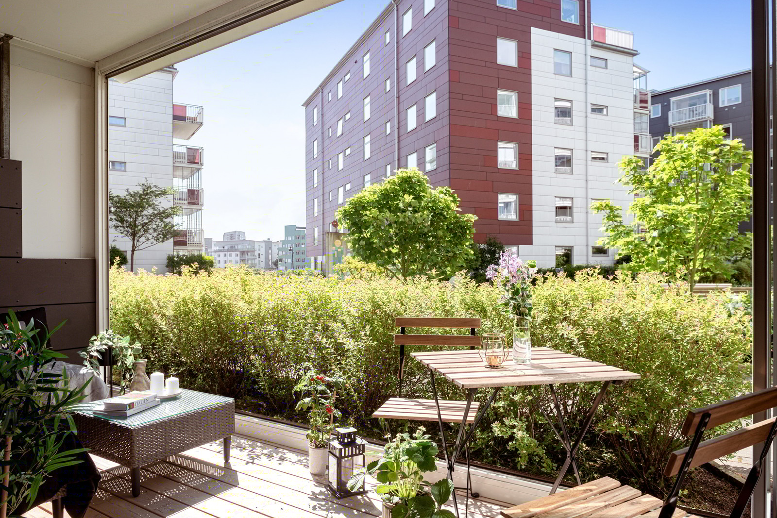 Ljus studioetta med stor solig inglasad uteplats vid vattnet i Sannegården.