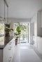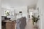 Entré via loftgång som rymmer en mindre sittmöbel. Du välkomnas direkt in till den öppna planlösningen där de rymliga ytorna samsas på ett harmoniskt sätt. Direkt till vänster finns plats för avhängning, längre in i bostaden finns även garderob bakom spegelskjutdörrar. Precis innanför entrén ligger det stilrena köket med vita släta luckor och vitt kakel ovan bänkskiva i stenkomposit. Gott om arbetsytor och förvaring . Köket är utrustat med fullstor kyl och frys, diskmaskin, induktionshäll, fläkt, ugn samt mikrovågsugn. En vacker köksö skärmar av mot de övriga ytorna.
