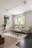 Ett rymligt och lättmöblerat vardagsrum med en naturlig uppdelning mellan soffdel och matplats. Här finns höga fönster ut mot Friggagatan som släpper in mycket ljus, och de djupa fönsternischerna ger en extra charm. Golvet är i vacker ekparkett och väggarna är målade och tapetserade för en modern och trivsam känsla. Ett inbyggt kontor ger smart funktionalitet för den som arbetar hemifrån eller behöver ett avskilt utrymme.