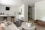 I öppen anslutning till köket ligger vardagsrummet, en social yta som präglas av ljus, rymd och harmoni. Stora fönster släpper in rikligt med dagsljus och det ljusa trägolvet tillsammans med de vita väggarna förstärker känslan av öppenhet. Här finns gott om plats för en rejäl soffgrupp och möblemang, och planlösningen bjuder in till både umgänge och avkoppling.