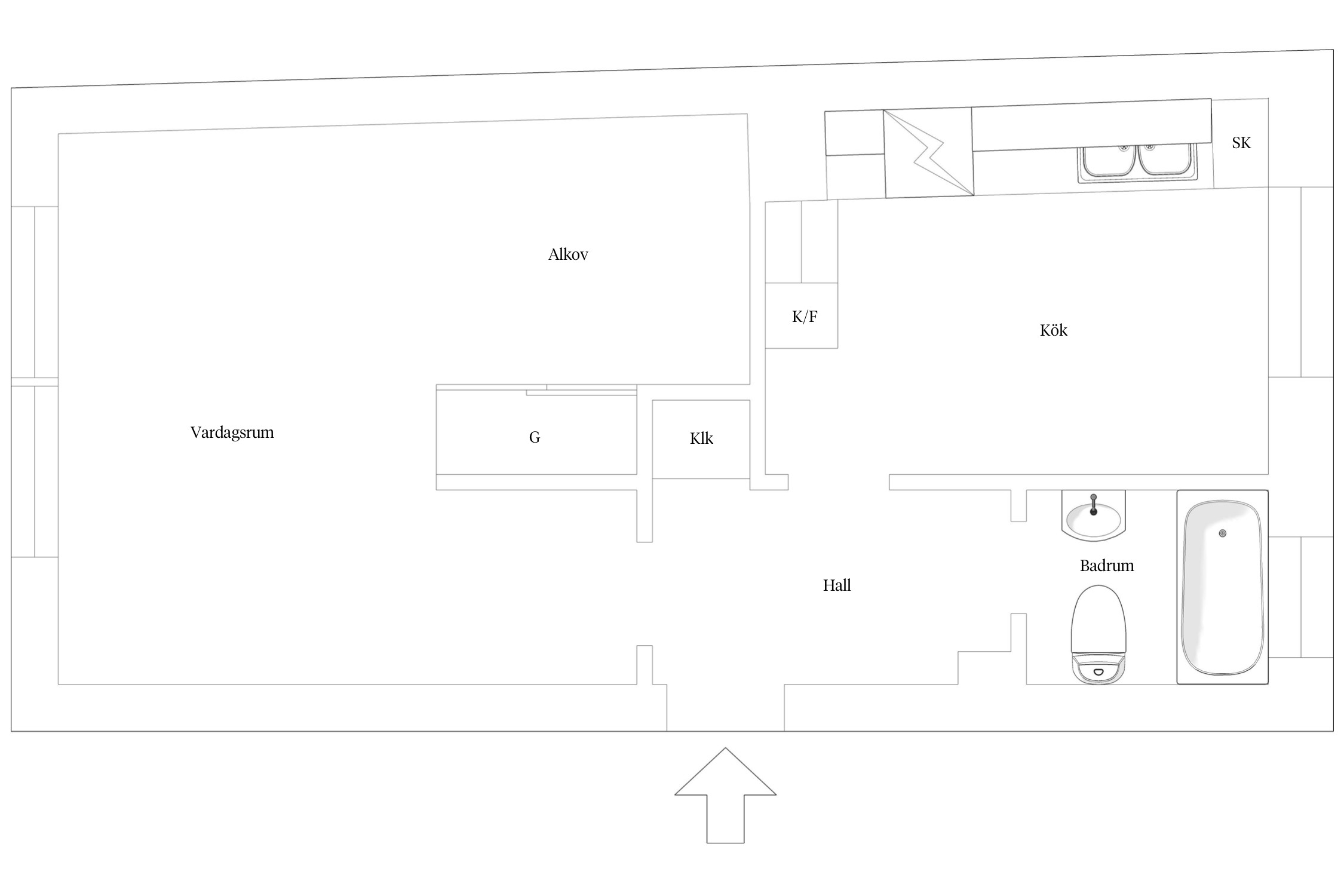 En halv trappa upp välkomnas du in i denna charmiga genomgångsetta. Väl inne i bostaden möts du av en rymlig hall med goda avhängningsmöjligheter samt en klädkammare för kläder och förvaring. Ljusinsläppet och takhöjden utmärker sig direkt och bidrar till en känsla av rymd.