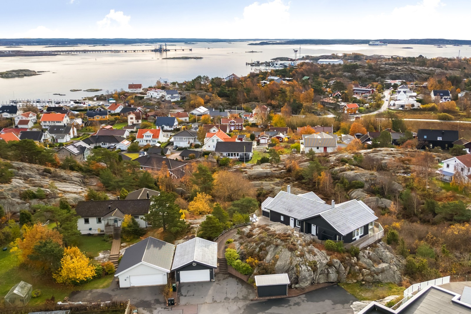 Här är drömmen för dig som vill bo högt och fritt med en underbar utsikt över Göteborgs vackra skärgård med en magnifik vy som sträcker sig till Vinga fyr. Tomten har härliga ytor om 1359 kvm med vackra berghällar och uppfyller drömmarna om ett bekvämt och havsnära boende. Smakfullt enplanshus med härliga altaner som sträcker sig längs med fastigheten. Här erbjuds underbara sociala ytor med öppen planlösning mellan kök och allrum vilket ger rymliga ytor för familj och vänner att umgås på. Högt i tak med ryggåstak som skapar härlig rymd. Från allrummet öppnas det upp med glasdörr mot ett magiskt uterum. Här finns idag två sovrum men möjlighet att skapa flera om så önskas.