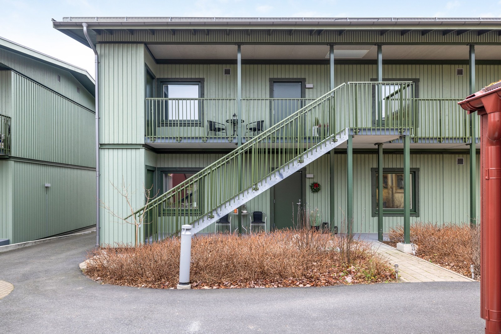 På gårdarna finns även sophus, två stycken barnvagn/rullstolsförråd samt förråd i anslutning till växthusen, dessa med fint sedumtak.