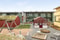Mellan husen finns olika lekplatser för barnen med sandlåda och gunga.