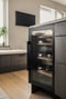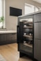 Från hallen öppnar köket upp sig med stora spröjsade fönsterpartier som släpper in rikligt med ljus och bjuder på fin utsikt över området. Intill fönstren är det inrett med en charmig kökssoffa, den perfekta platsen för en kopp kaffe i morgonsolen eller en avslappnad stund medan maten puttrar på spisen. Köksinredningen kommer från Marbodal och är smakfullt inrett med skåpsluckor i mörkt trä som bryts av med en ljusare stenskiva, vilken även fortsätter upp på väggen bakom som stänkskydd. Utformat i vinkel bjuder köket på gott om förvaring och arbetsytor, där en stor köksö bidrar ytterligare samtidigt som den fungerar perfekt som serveringsyta. Maskinell utrustning finns i form av hel kyl och frys, diskmaskin, ugn, induktionshäll, mikro, fläkt samt integrerad vinkyl i köksön. De generösa sällskapsytorna lämnar dessutom gott om plats för ett större matsalsbord samt möjlighet att komplettera med ett serveringsskåp eller annan förvaring. Och när sommaren kommer? Öppna upp den franska balkongen och låt ljuset och den friska luften svepa genom rummet. Väggarna är målade i en ljus gråbeige ton och på golvet ligger ett trägolv, hårdvaxad vitpigmenterad ek i enstav, med skön golvvärme i.